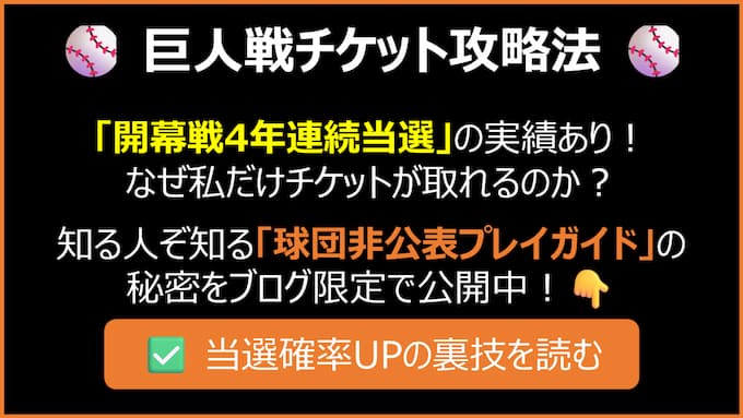 チケット 【2026年最新】【開幕4年連続当選】巨人戦チケット抽選の裏ワザ|2024年CS 土日祝日 勝率75%!三井ショッピングパークカード《セゾン》が最強な理由 2023年2月24日 aoimahiroblog 東京ドームへようこそ!
