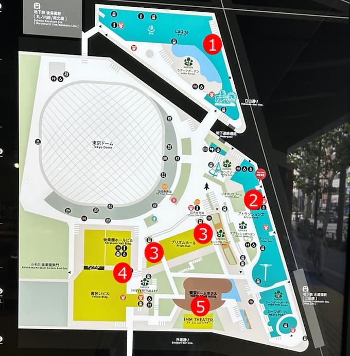 まず、これだけは絶対にやっておいて欲しいのが「東京ドームシティ公式アプリ」の引率―ルです。これ一つあれば、トイレやコインロッカー、飲食店の場所がマップで一目瞭然。正直、私が地図を載せるより、このアプリの方が100倍便利です(笑)