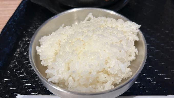 銀色のステンレス茶碗で白米を食べると、まるで韓国旅行に来たような気分になれますよ。