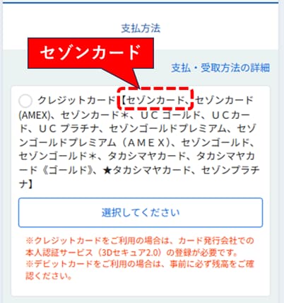 【注意】国際ブランド選択