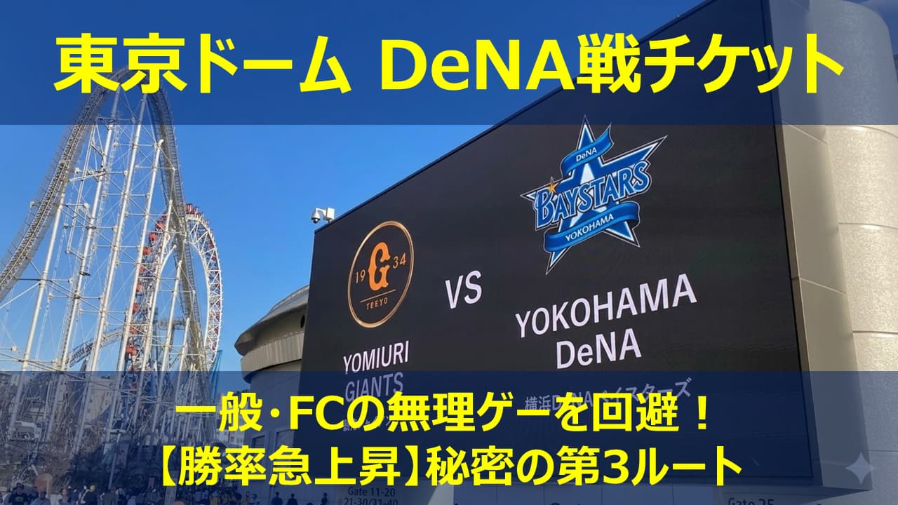 一般販売では「絶望的」と言われる東京ドームのDeNA戦チケット。 しかし、このルートを知っているだけで、実質負担0円で激戦の「レフト応援席」や「3塁側指定席」への当選確率を劇的に上げることができます。