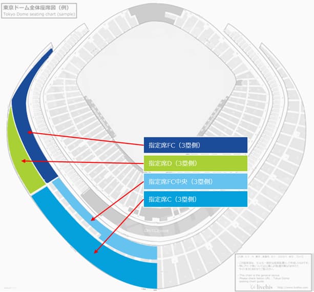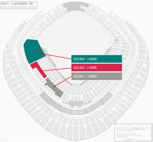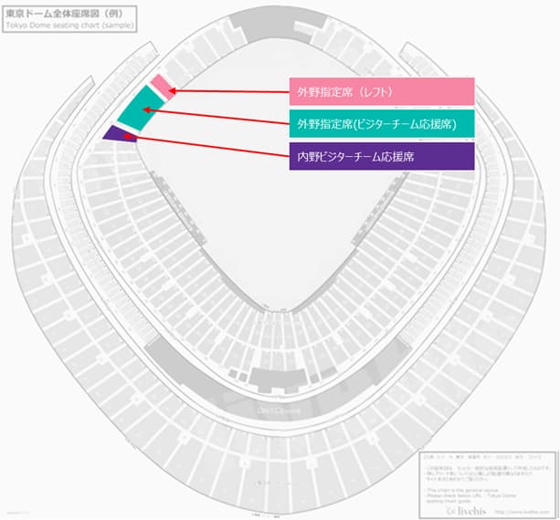 この圧倒的な勝率を誇るセゾン枠ですが、ドームの全座席が買えるわけではありません。対象となる座席は以下の通りです。