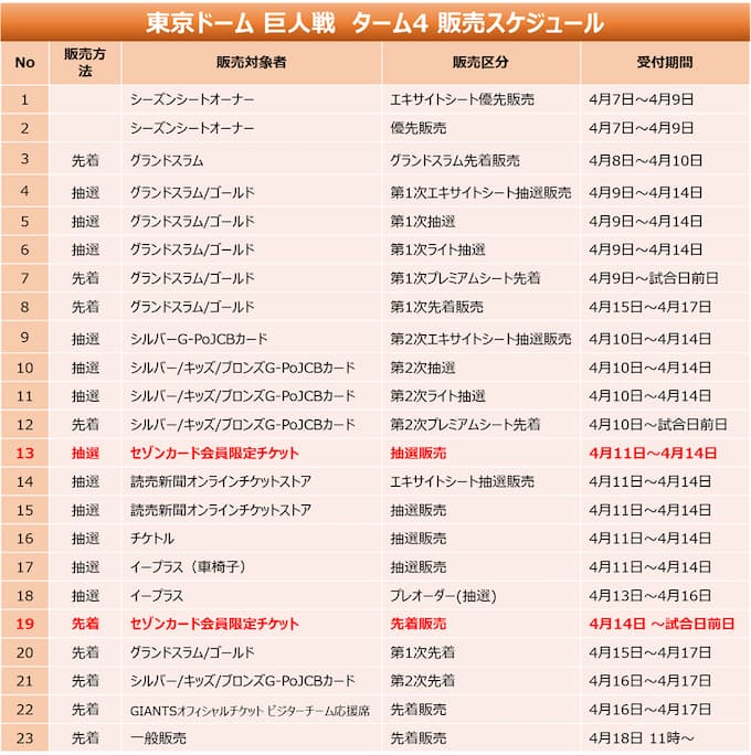 巨人公式サイトに掲載されていない、セゾンカード会員限定チケットなら、FCゴールド会員ですら落選する激戦を、高い確率で突破できます