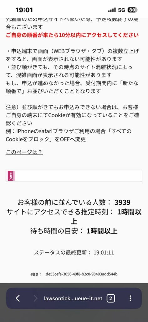 - 後から来た人は「最後尾」 19時を過ぎてからアクセスした人は、基本的にその時点での最後尾に並ぶことになります。