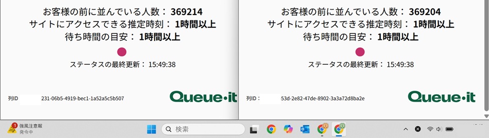 このようにブラウザを分けることで、1台のPCでも確実に複数の「抽選権」を確保し、アクセス集中時のチャンスを広げることが可能です。